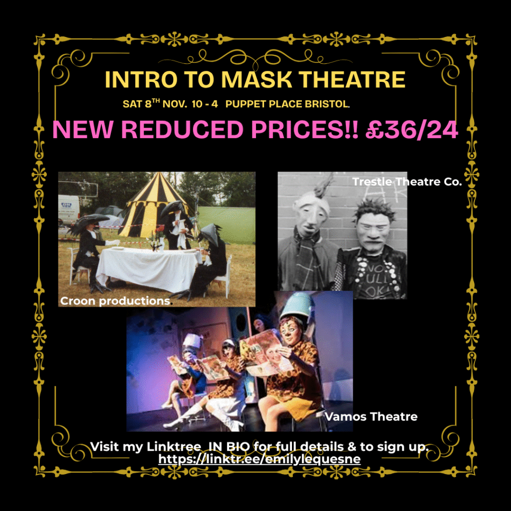Tickets NOW cost from £12-£36 and you can purchase them here – Mask Workshop Bookings
